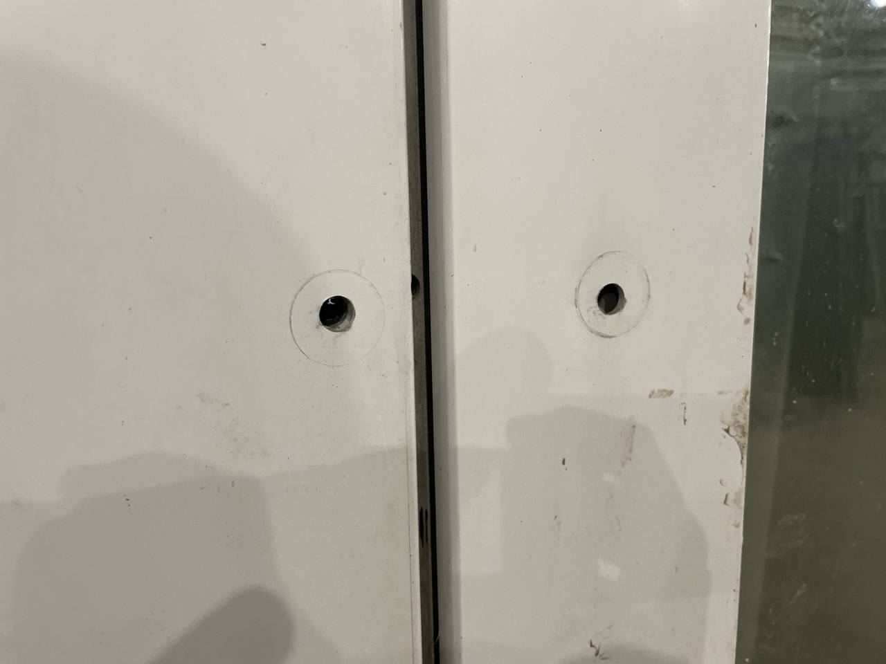 Отверстия от доводчика на створках и на раме отверстия на створках.