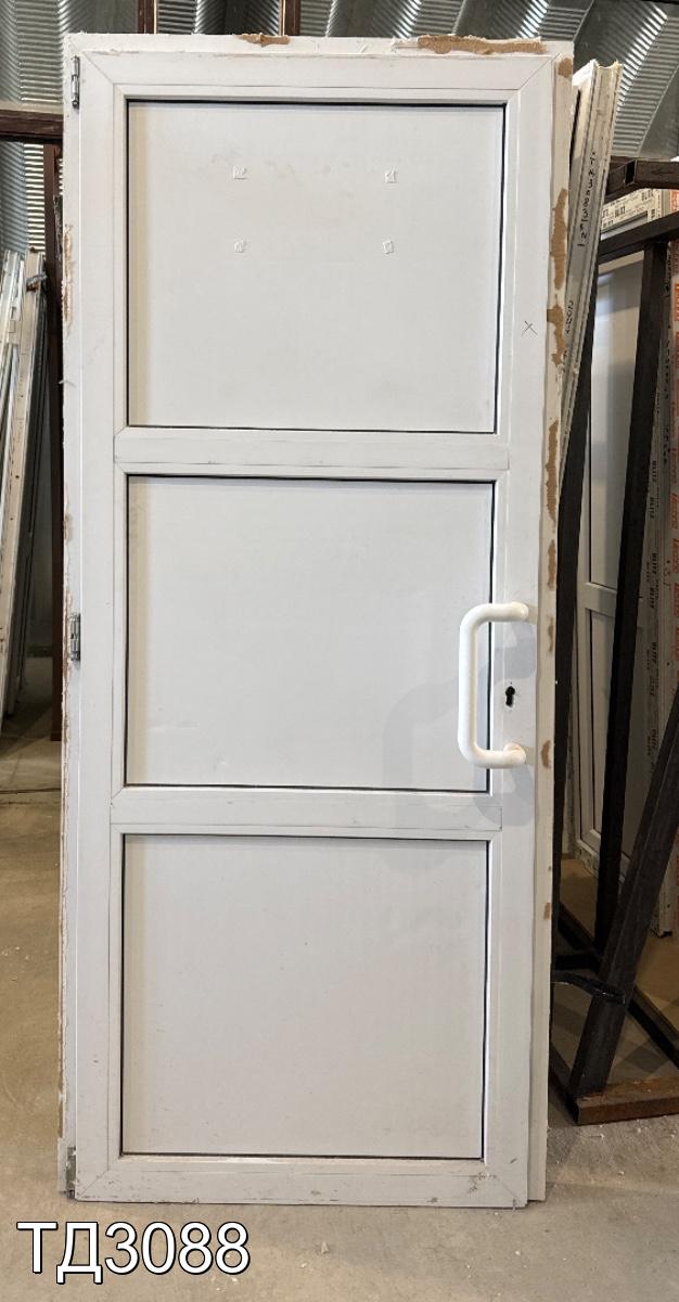 Дверь непрозрачная, разделена импостом на три части, сэндвич-панель.
