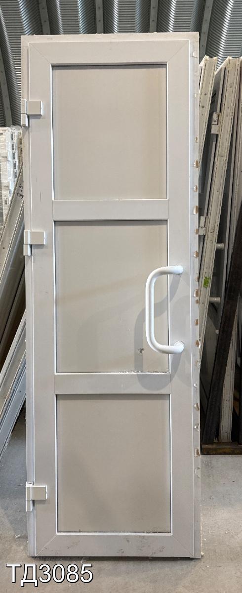 Дверь непрозрачная, разделена импостом на три части, сэндвич-панель.