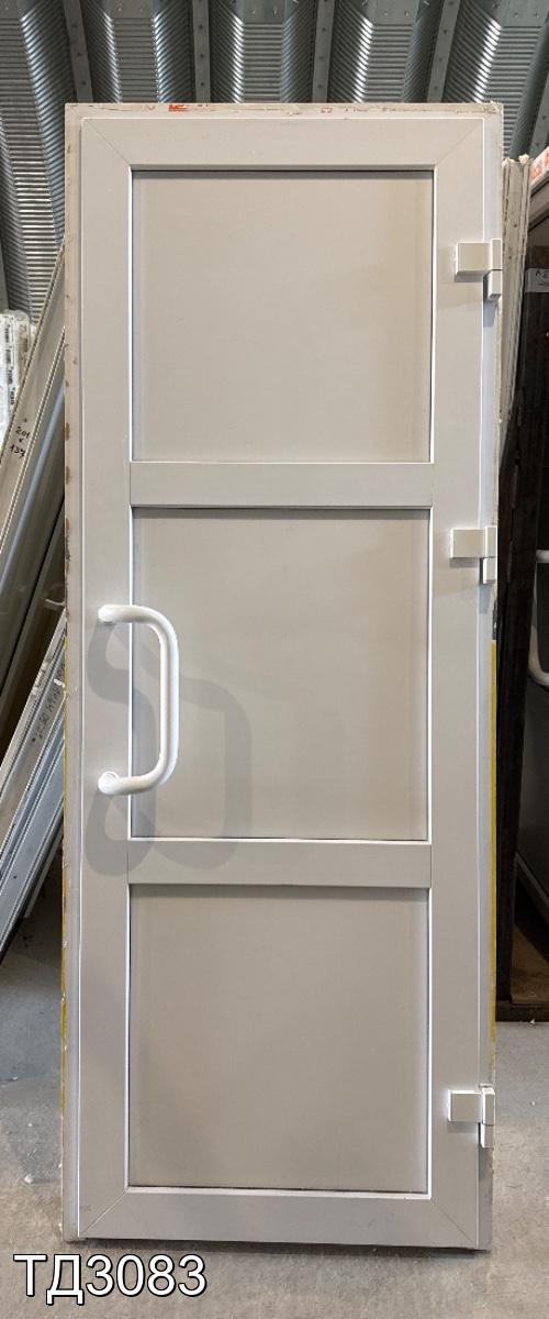 Дверь непрозрачная, разделена импостом на три части, сэндвич-панель.