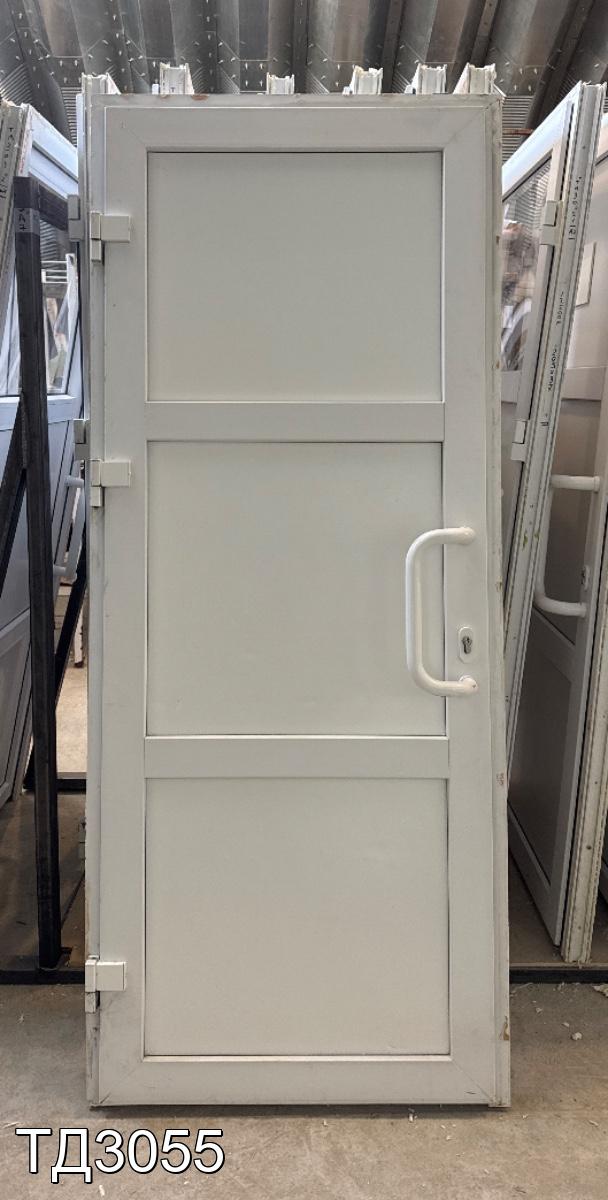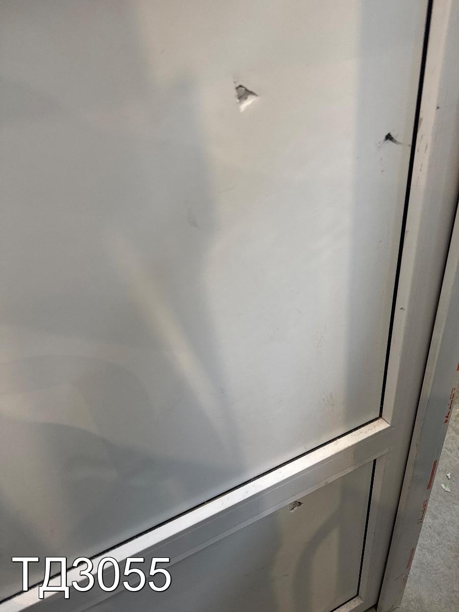 Дверь непрозрачная, разделена импостом на три части, сэндвич-панель.