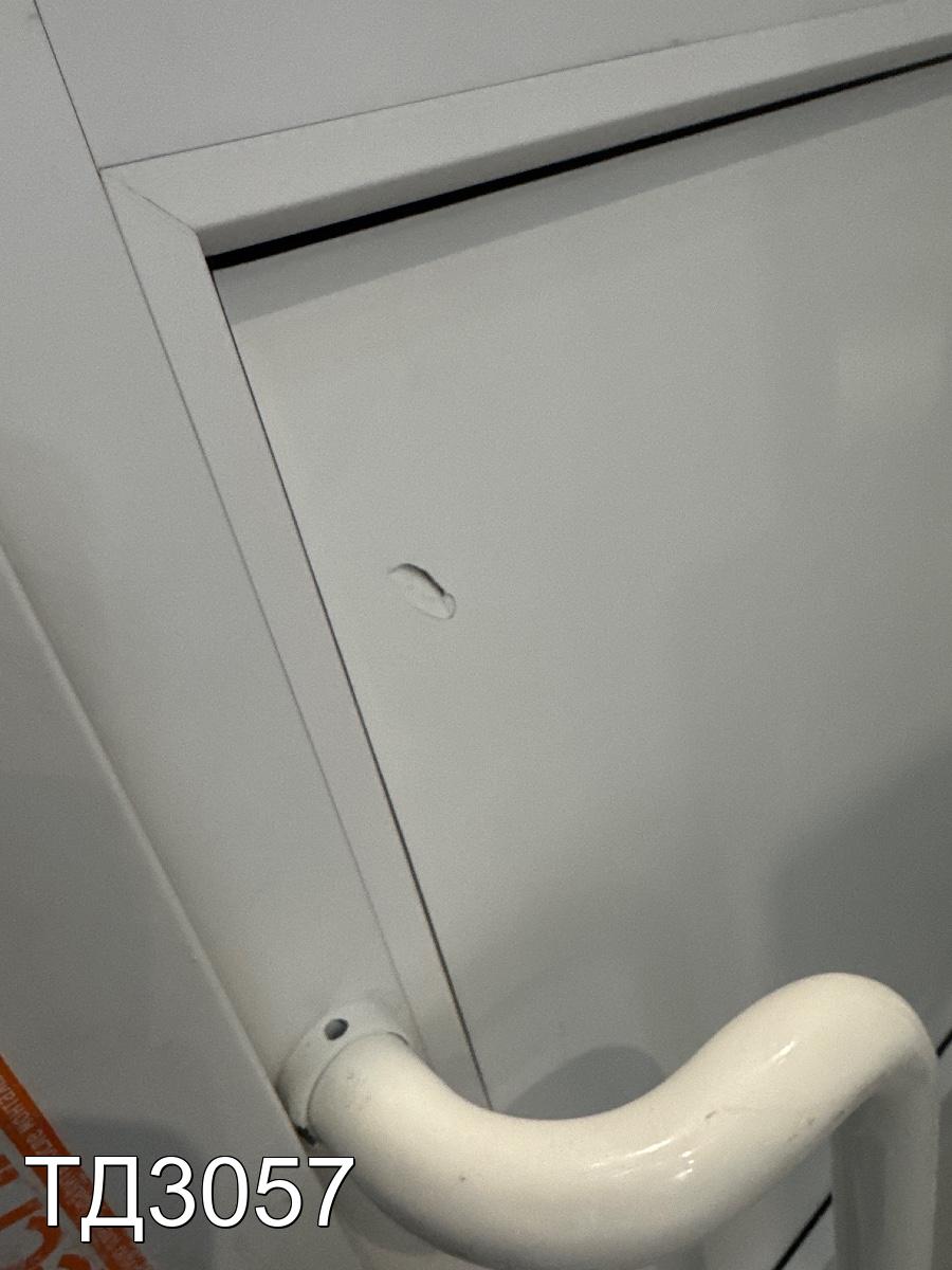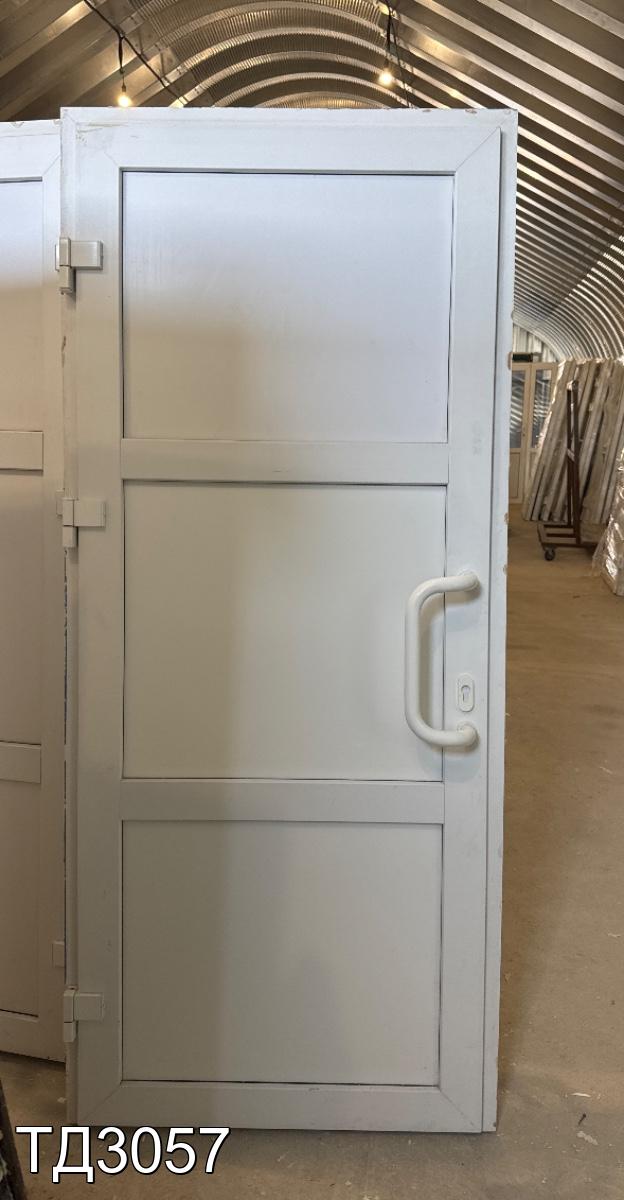 Дверь непрозрачная, разделена импостом на три части, сэндвич-панель.
