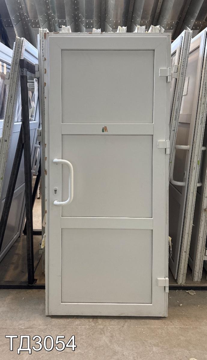 Дверь непрозрачная, разделена импостом на три части, сэндвич-панель.