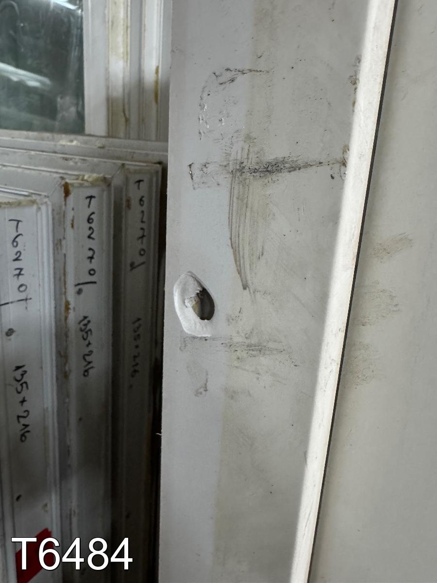 Скол и отверстия от саморезов на раме.